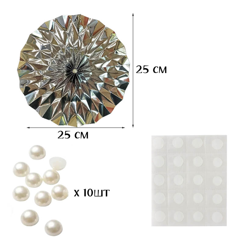 Фанты фольгированные с жемчужиной НАБОР 10шт х 25см, серебро