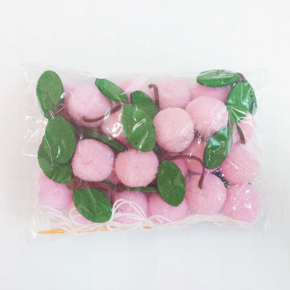 Гирлянда на веревке "Вишенки"  3 см х 24 шт х 2,2 м, "Розовый" - 1 шт.