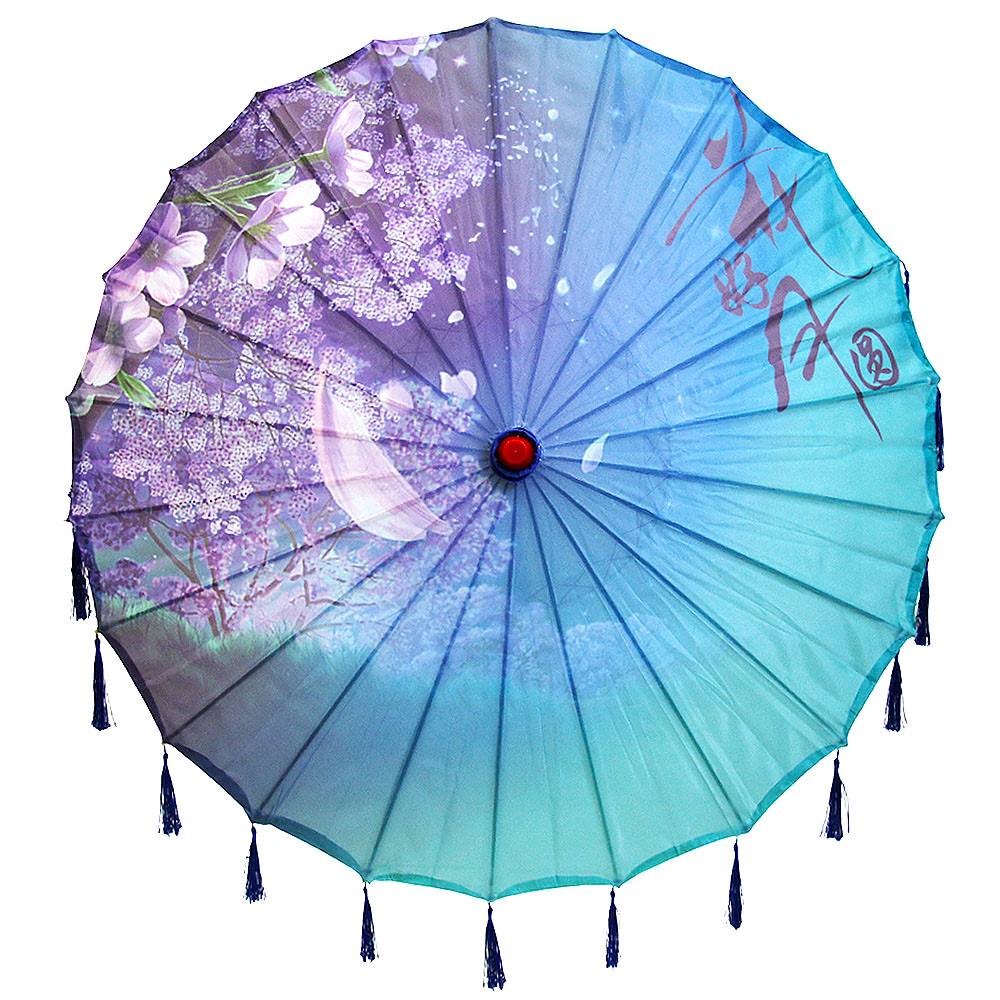 Китайские тканевые зонтики цветочные с кисточками 82х54 см