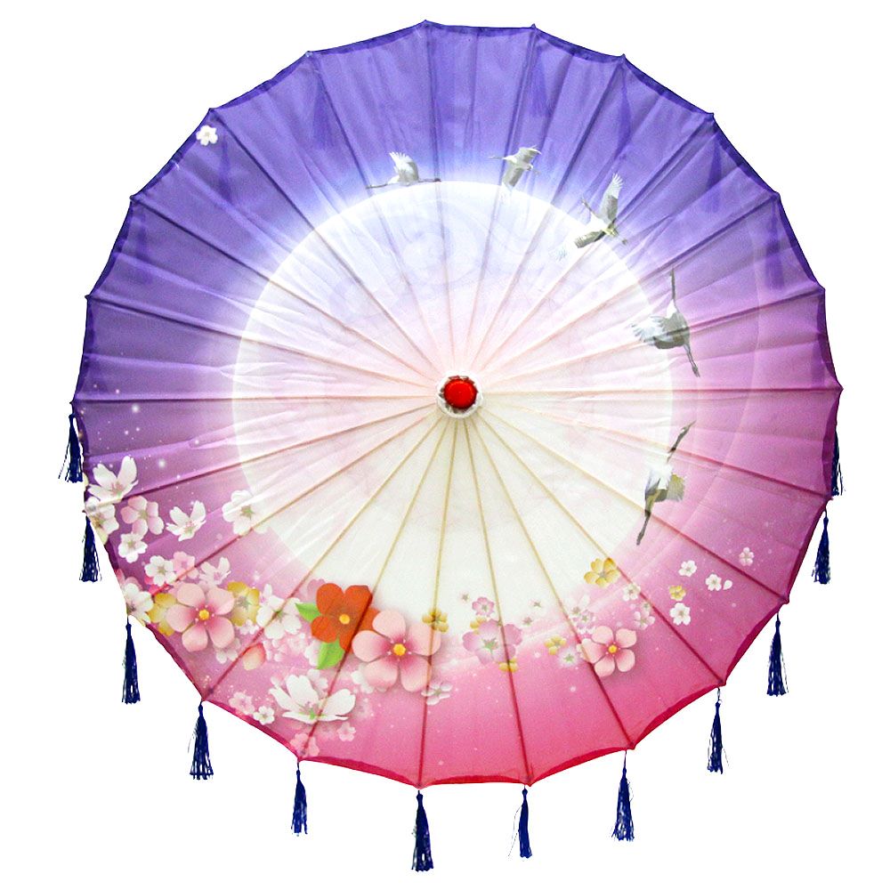 Китайский тканевый зонтик цветочный с кисточками 82х54см, №4