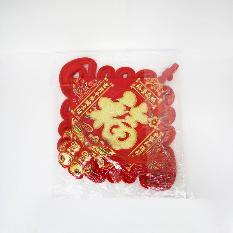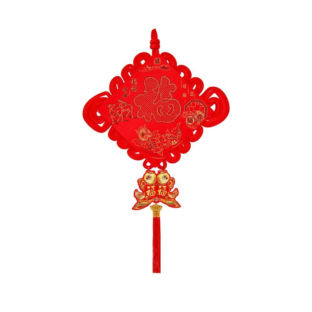 Традиционный китайский узел в форме ромба с символичным дизайном. Яркое сочетание красного бархата и золотых элементов создает эффектный акцент в интерьере.