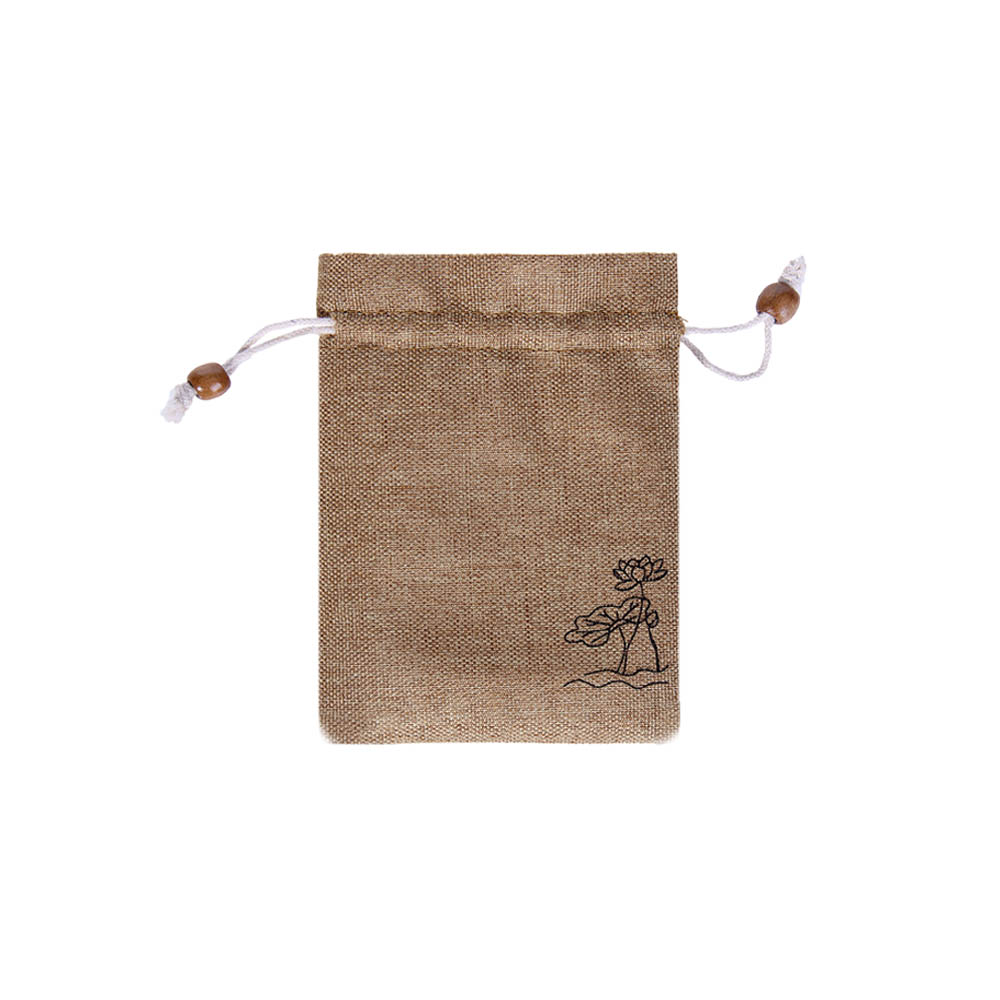 Мешочек из искусственного льна с орнаментом 10х14 см, бежевый