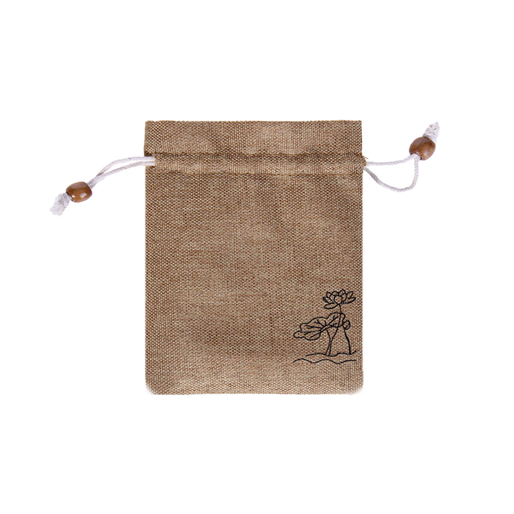 Мешочек из искусственного льна с орнаментом 15х12 см, бежевый
