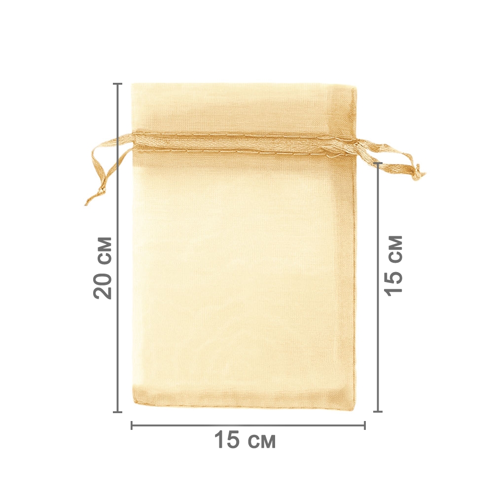 Мешочек из органзы 15 х 20 см — стильное решение для упаковки мелких и средних предметов. Лёгкая полупрозрачная ткань красиво подчёркивает содержимое.