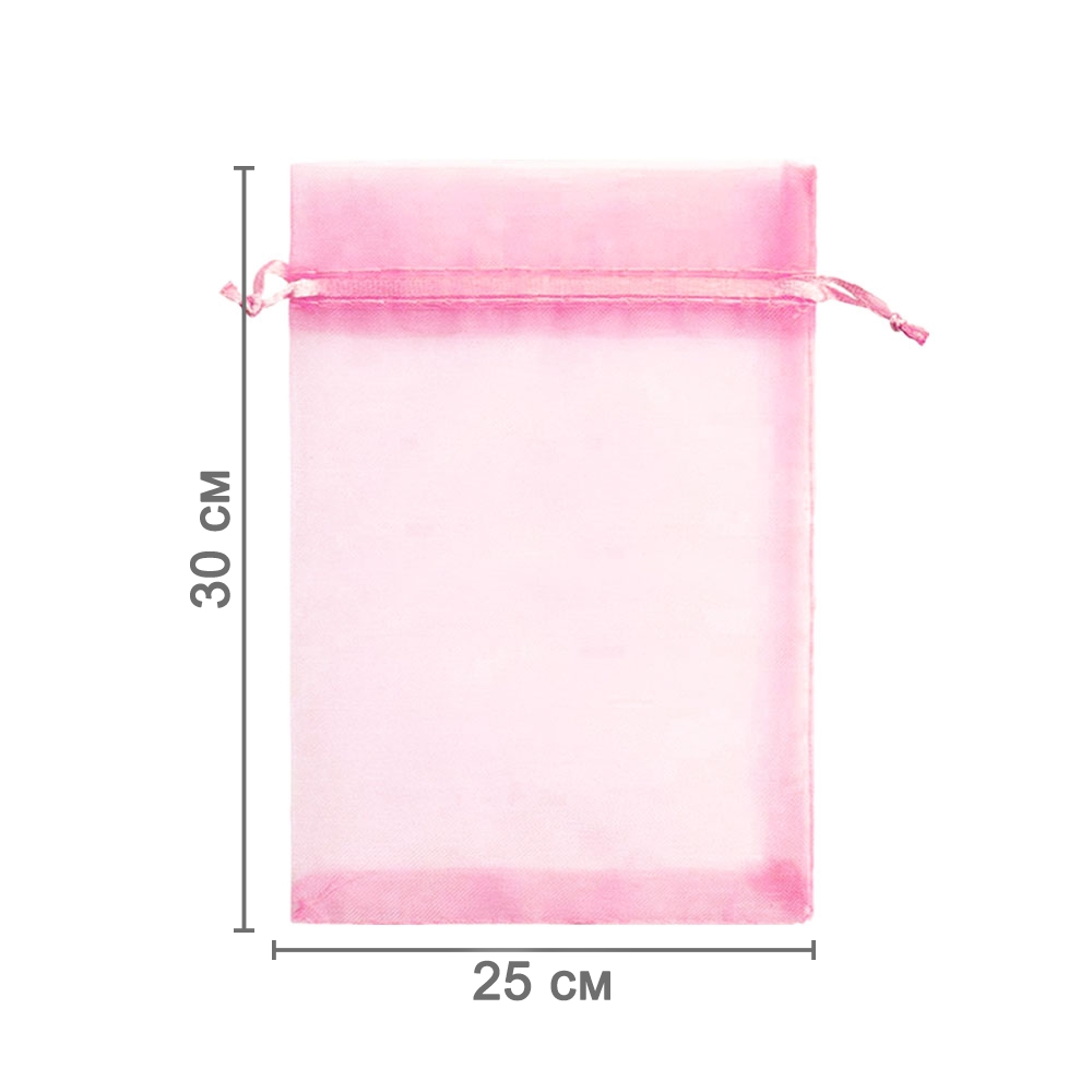 Мешочек из органзы 25 х 30 см — стильный аксессуар для упаковки средних и крупных предметов. Полупрозрачная ткань подчёркивает содержимое и придаёт аккуратный вид.