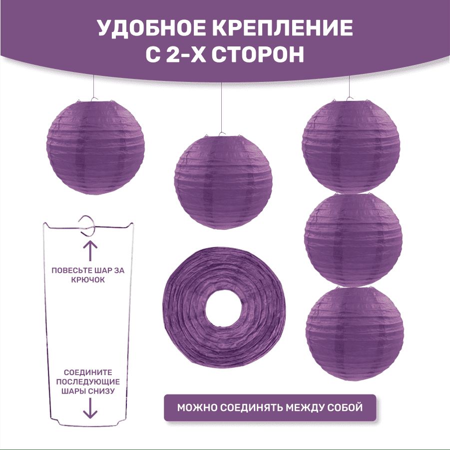 В комплект входит 8 бумажных фонариков и лента атласная.