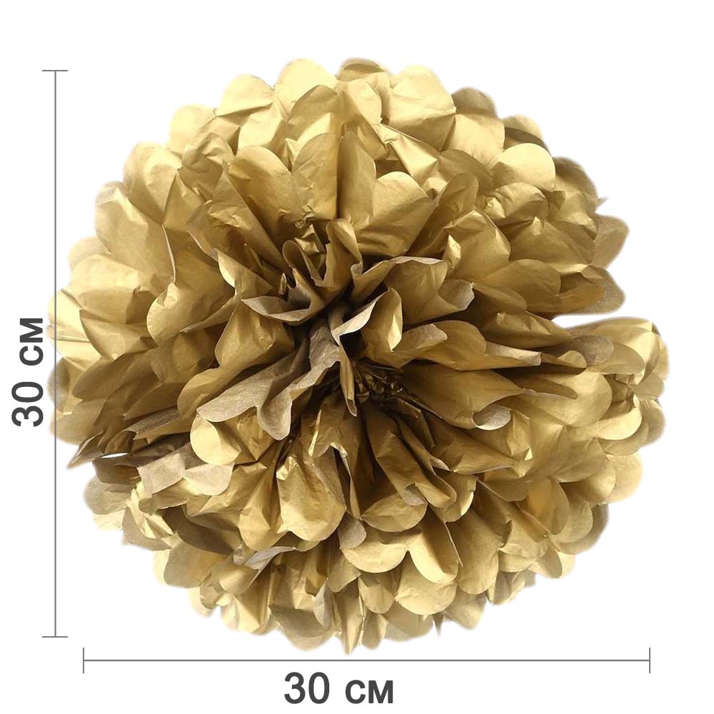 Золотой бумажный помпон диаметром 30 см — стильное и лёгкое украшение для праздников, фотозон, витрин и интерьера. Отлично подойдёт для дней рождений, свадеб, вечеринок и тематических мероприятий.