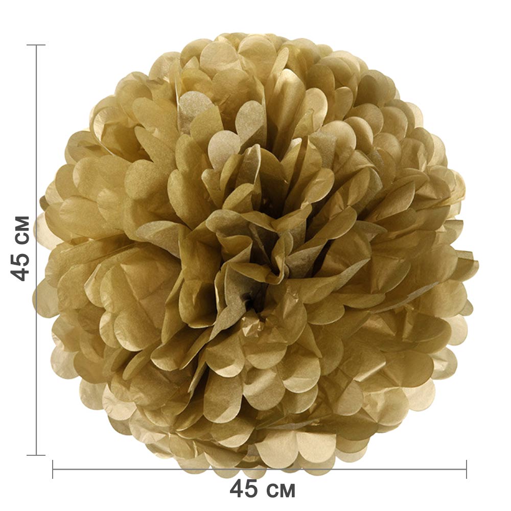 Золотой бумажный помпон диаметром 45 см — стильное и лёгкое украшение для праздников, фотозон, витрин и интерьера. Отлично подойдёт для дней рождений, свадеб, вечеринок и тематических мероприятий.