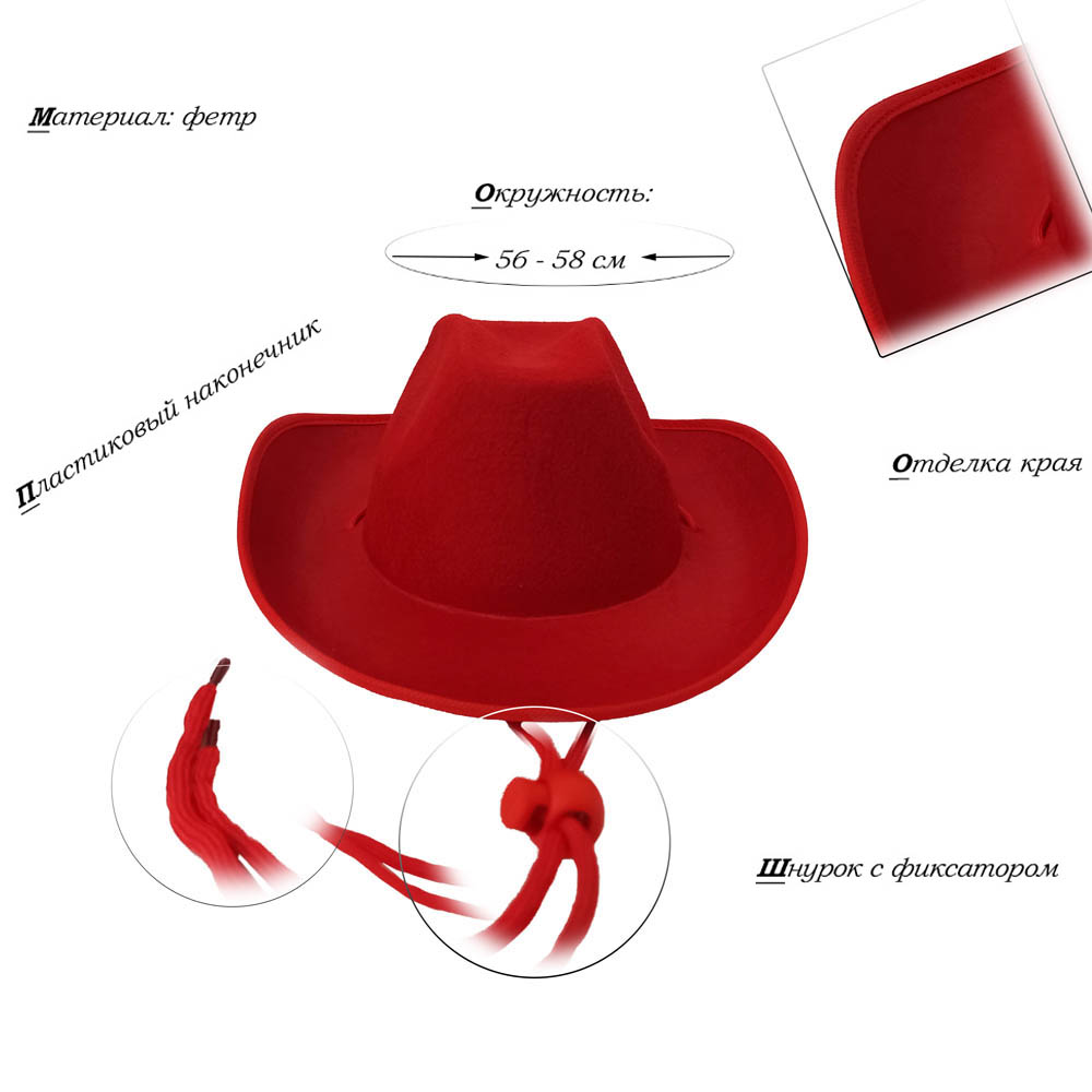 Шляпа ковбойская, красный - 1 шт.