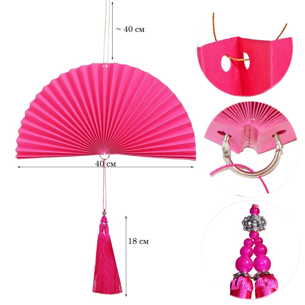 Веер-гармошка с кисточкой, 40 см, малиновый — 1 шт.