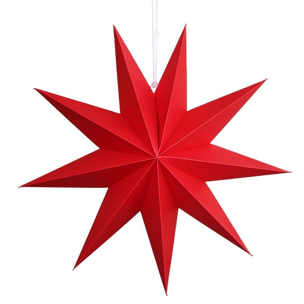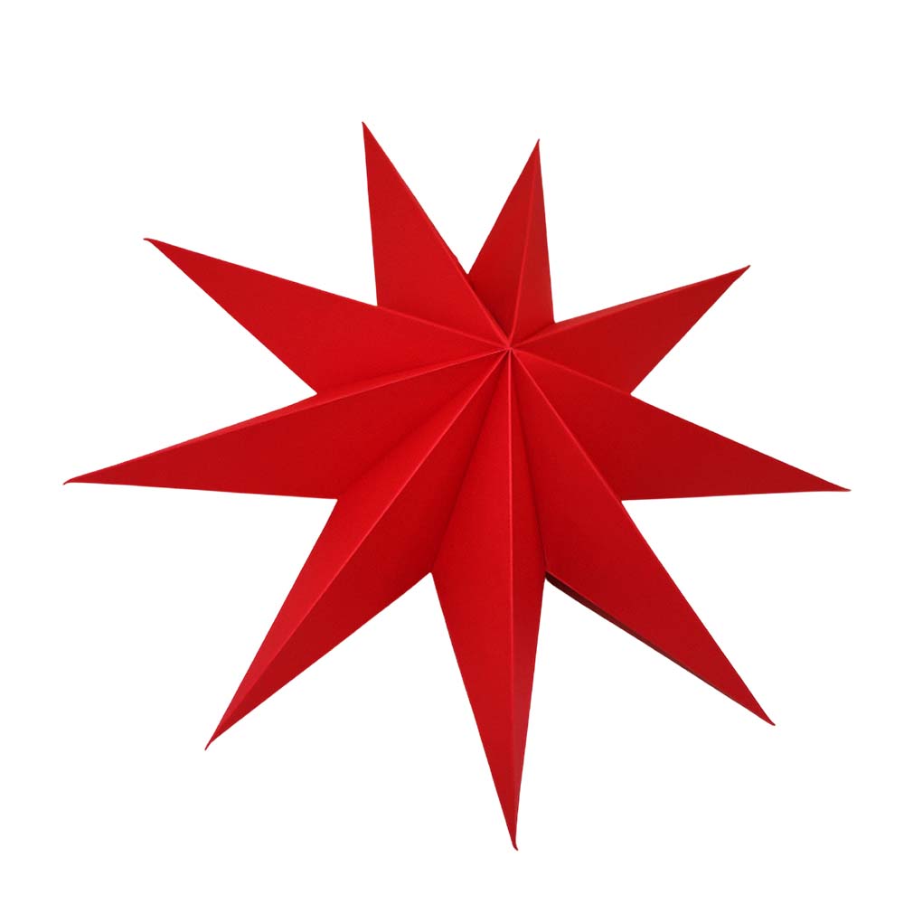 Объёмная девятиконечная звезда 45 см — декоративный элемент для интерьера и праздничного оформления. Лёгкая интерьерная звезда из картона хорошо держит форму и создаёт выразительный объём. Поставляется в сложенном виде, в комплекте шнур для фиксации объёма и подвеса.